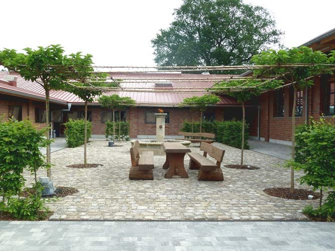 Die unterschiedlichen Gebäudeteile wurden in den Jahren 2010-2012 saniert, erweitert und neu errichtet. Mit der Gestaltung der Außenanlagen sollte dem modernisierten Komplex der Charakter einer Hofstelle erhalten bleiben.